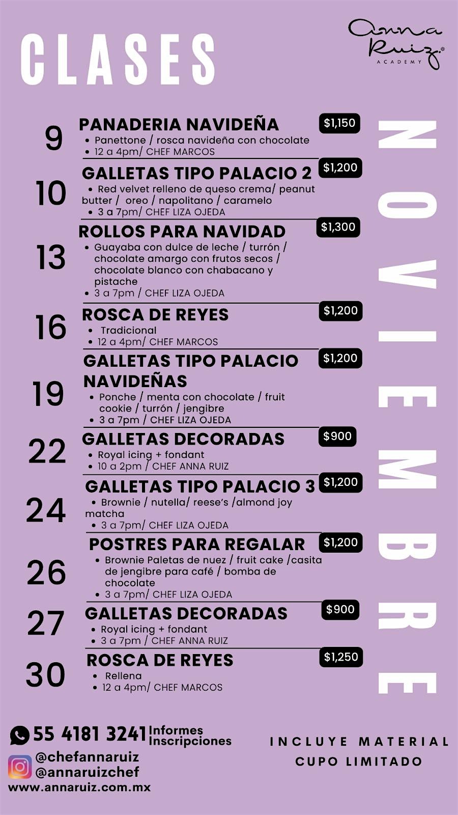 Anna Ruíz Store Adolfo Prieto 1439 - 1, Col Del Valle Centro, Adentro del estacionamiento del Hiperlumen Del Valle, México, CMX, MexicoVen y aprende con la Chef Liza Ojeda este 07 DE DICIEMBRE, Aprenderás a elaborar PANADERIA NAVIDEÑAMini rosca de reyes y conchas navideñas.Para más información comunícate con nosotros alWhattsApp +52 55 418132 41 en CDMX
