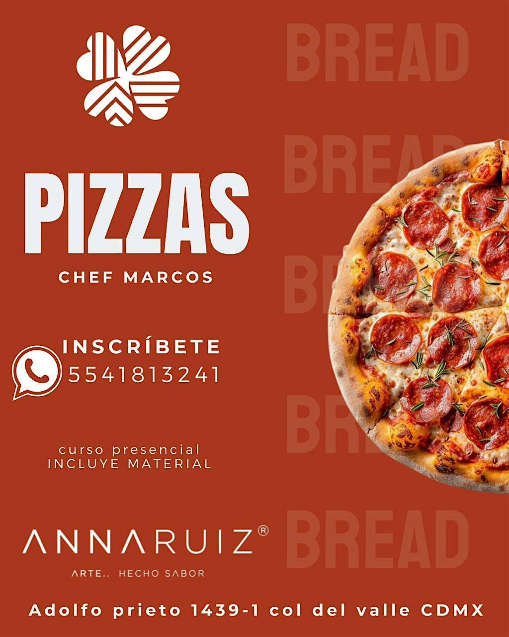 Anna Ruíz Store Adolfo Prieto 1439 - 1, Col Del Valle Centro, Adentro del estacionamiento del Hiperlumen Del Valle, México, D.F., MexicoVen y aprende con el Chef Marcos Valadez, este VIERNES de 12 a 16 hrs, Pizzas.PIZZAS CON EL CHEF MARCOS VALADEZJoin us at Anna Ruíz Store on January 16, 2026 at 12:00 PM for a delicious pizza-making experience with Chef Marcos Valadez!¡Ven y aprende a hacer las mejores pizzas con nosotros! No te pierdas esta oportunidad de aprender los secretos de un verdadero experto. ¡Te esperamos!Date & Time: January 16, 2026 at 12:00 PM (Central Time)