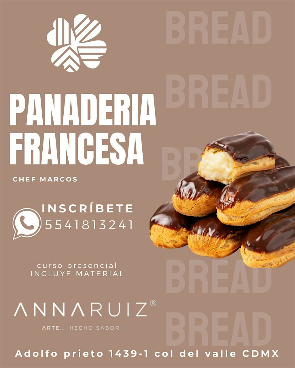 Anna Ruíz Store Adolfo Prieto 1439 - 1, Col Del Valle Centro, Adentro del estacionamiento del Hiperlumen Del Valle, México, D.F., MexicoVen y aprende con el Chef Marcos Valadez, 12:00 a 16:00 hrs, Aprenderás a hacer Pan tipo Francesa.¡No te pierdas la Panadería Francesa por Chef Marcos Valadez en la tienda de Anna Ruíz!¡Ven y disfruta de una tarde llena de deliciosos panes y postres franceses preparados por el talentoso Chef Marcos Valadez! La Panadería Francesa se llevará a cabo el domingo 18 de mayo de 2025 a las 13:00 hrs en la tienda de Anna Ruíz.¡No dejes pasar la oportunidad de probar auténticas delicias francesas en un ambiente acogedor y familiar! ¡Te esperamos para disfrutar juntos de esta experiencia culinaria única!