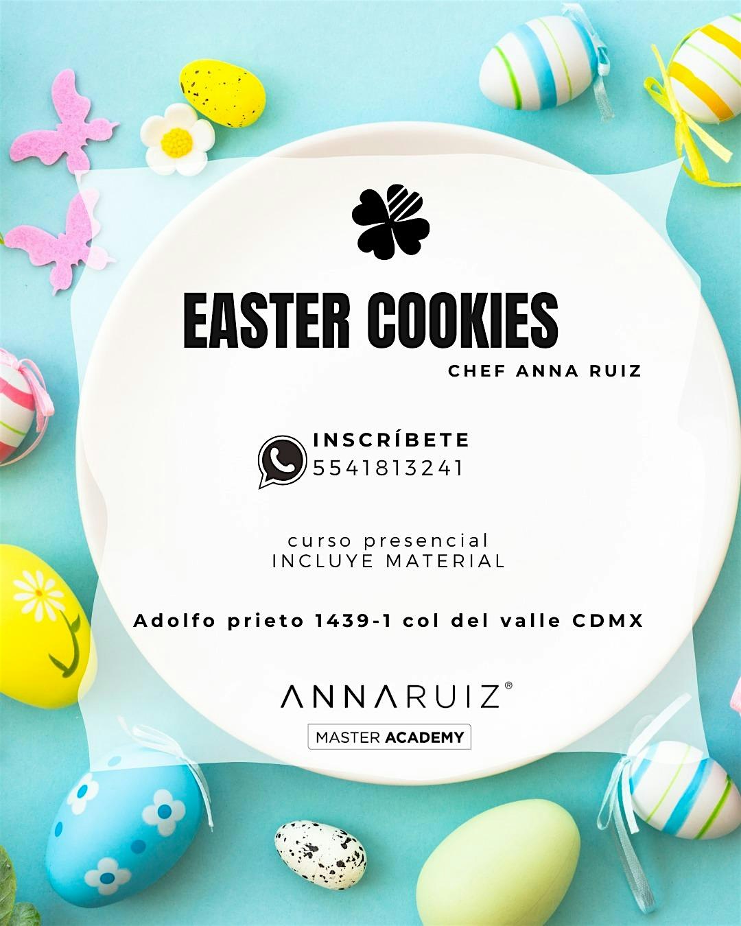 Anna Ruíz Store Adolfo Prieto 1439 - 1, Col Del Valle Centro, Adentro del estacionamiento del Hiperlumen Del Valle, México, CMX, MexicoEaster Cookies Galletas decoradas con Chef Anna Ruiz 7 de marzo 10:00 a 02:00pmWelcome to the Easter Cookies Decorating Event with Chef Anna Ruiz at the Anna Ruíz Store! Get ready to unleash your creativity and decorate delicious Easter cookies with Chef Anna Ruiz herself. Don't miss this fun and tasty experience!Join us on March 31, 2026 at 10:00 AM (Central Time) at the Anna Ruíz Store. Let's make some beautiful and yummy Easter treats together!
