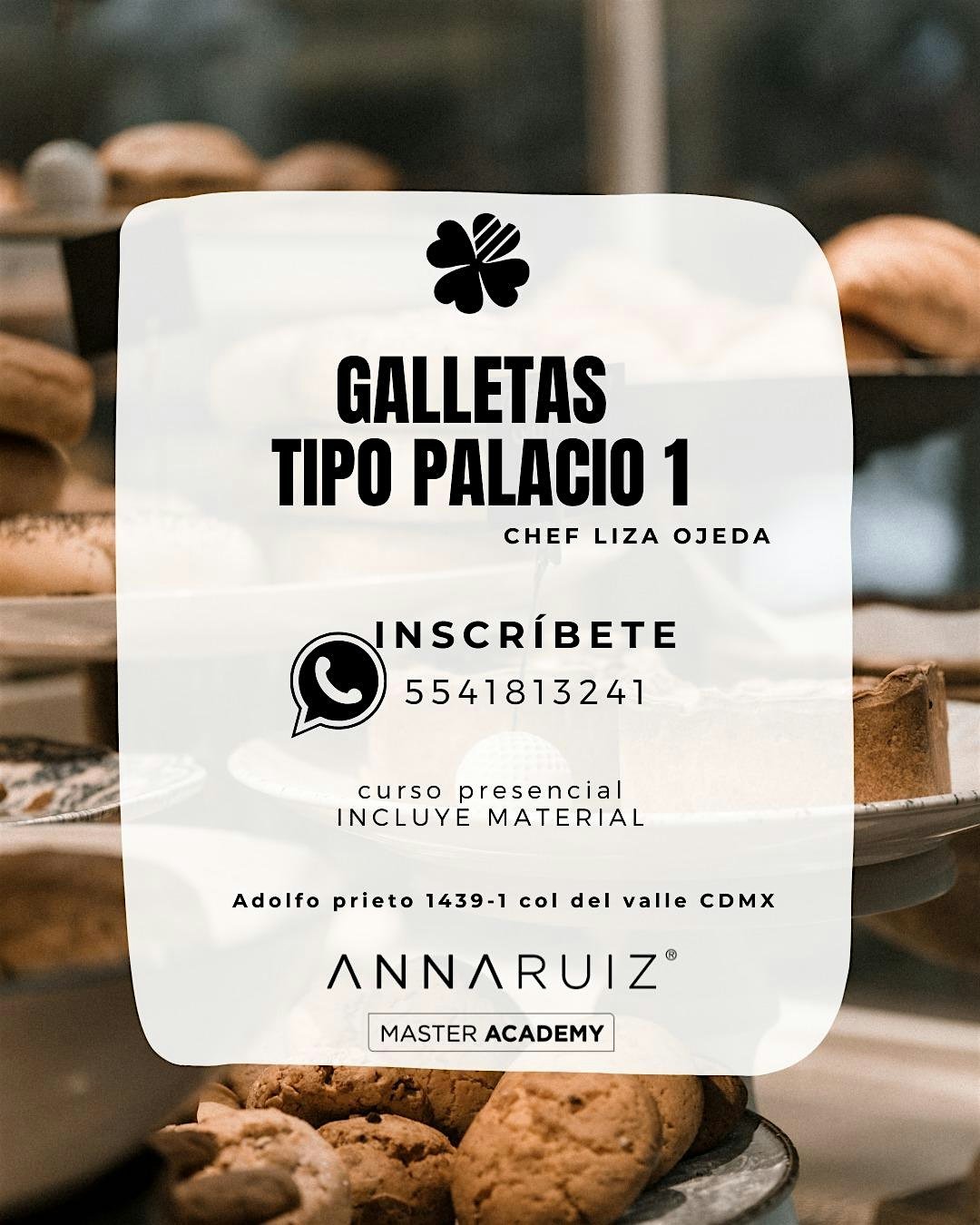 Anna Ruíz Store Adolfo Prieto 1439 - 1, Col Del Valle Centro, Adentro del estacionamiento del Hiperlumen Del Valle, México, CMX, MexicoVen y aprende con la Chef Liza Ojeda, Aprenderás a elaborar Galletas Tipo Palacio 1.Join us for GALLETAS TIPO PALACIO 1CON LA CHEF LIZA OJEDA at Anna Ruíz Store on Come learn how to make delicious palace-style cookies with Chef Liza Ojeda. It's going to be a fun and tasty event where you can pick up some new baking skills and enjoy some sweet treats. Don't miss out!Mark your calendar and bring your sweet tooth! See you there!