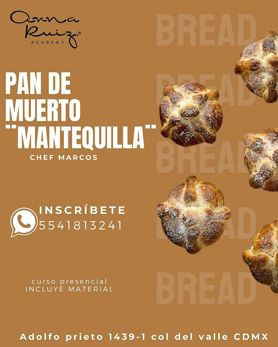 Anna Ruíz Store Adolfo Prieto 1439 - 1, Col Del Valle Centro, Adentro del estacionamiento del Hiperlumen Del Valle, México, D.F., MexicoVen y aprende con el Chef Marcos Valadez, el domingo 27 de septiembre de 10:00 a 14:00 hrs, Aprenderás a hacer Pan de Muerto de MantequillaJoin us for a delightful event!Come taste the delicious **Pan de Muerto de Mantequilla** created by **Chef Marcos Valadez** at **Anna Ruíz Store**. Get ready to indulge in this mouthwatering treat on **September 27, 2025 at 10:00 AM (America/Mexico_City Time)**. Don't miss this unique culinary experience!