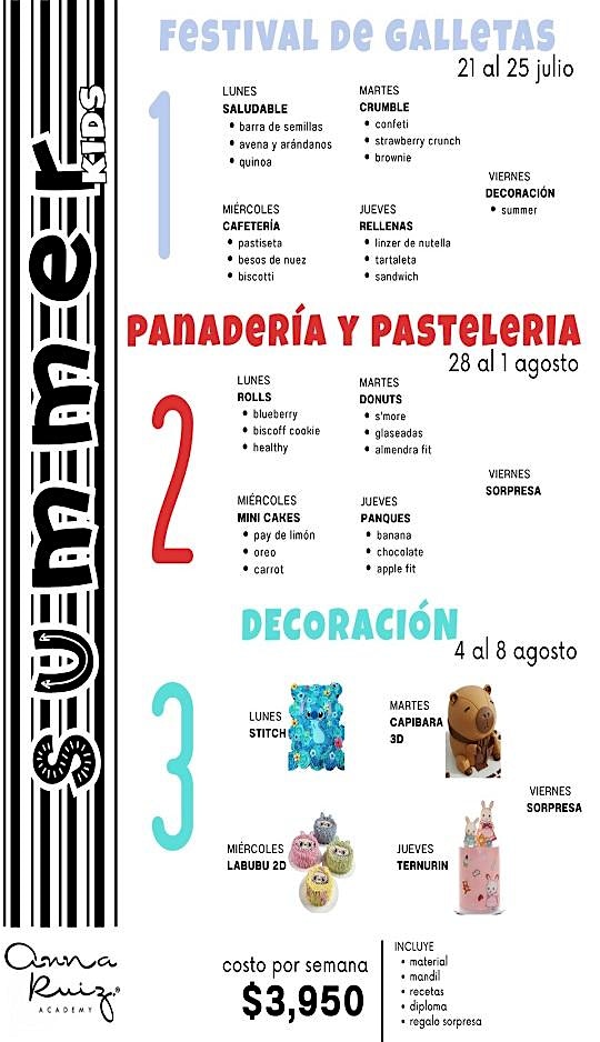 Anna Ruíz Store Adolfo Prieto 1439 - 1, Col Del Valle Centro, Adentro del estacionamiento del Hiperlumen Del Valle, México, D.F., MexicoVen a nuestro divertido curso de verano y vive junto a la Chef Anna Ruiz la experiencia de ser un verdadero chefSummer Kids 2024 | Semana 1 | FESTIVAL DE GALLETAS | en Anna Ruíz StoreHey amigos! 🌟 Are you ready for a sweet adventure? Join us at Anna Ruíz Store on July 21, 2025 at 9:00 AM for the FESTIVAL DE GALLETAS! 🍪 Let's bake, decorate, and enjoy delicious cookies together. It's going to be a day full of fun, laughter, and of course, yummy treats!Mark your calendars and come celebrate with us. Don't miss out on this awesome event [...]